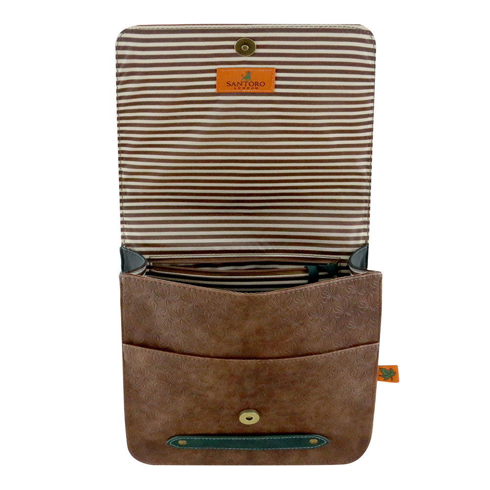 Има регулируема дълга дръжка и заден джоб, който се затваря със здрав цип с емайлиран накрайник във формата на листо.