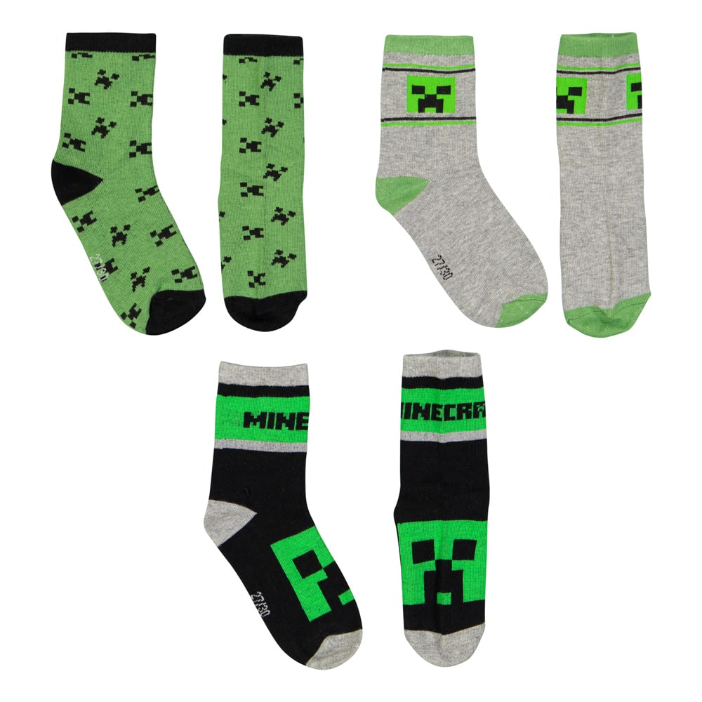 Топли крачета = повече игри. Цели три чифта памучни чорапи с различни дизайни от любимата игра Minecraft ви очакват в този комплект, създаден само за геймъри. За направата им не са използвани вредни химикали, което ги прави напълно безопасни за деца.Оригинален лицензиран продукт.