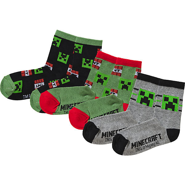 Топли крачета = на повече игри. Интересен комплект, състоящ се от три чифта чорапи с дизайн от любимата игра Minecraft. За направата им не са използвани вредни химикали, което ги прави напълно безопасни за деца.Оригинален лицензиран продукт.
