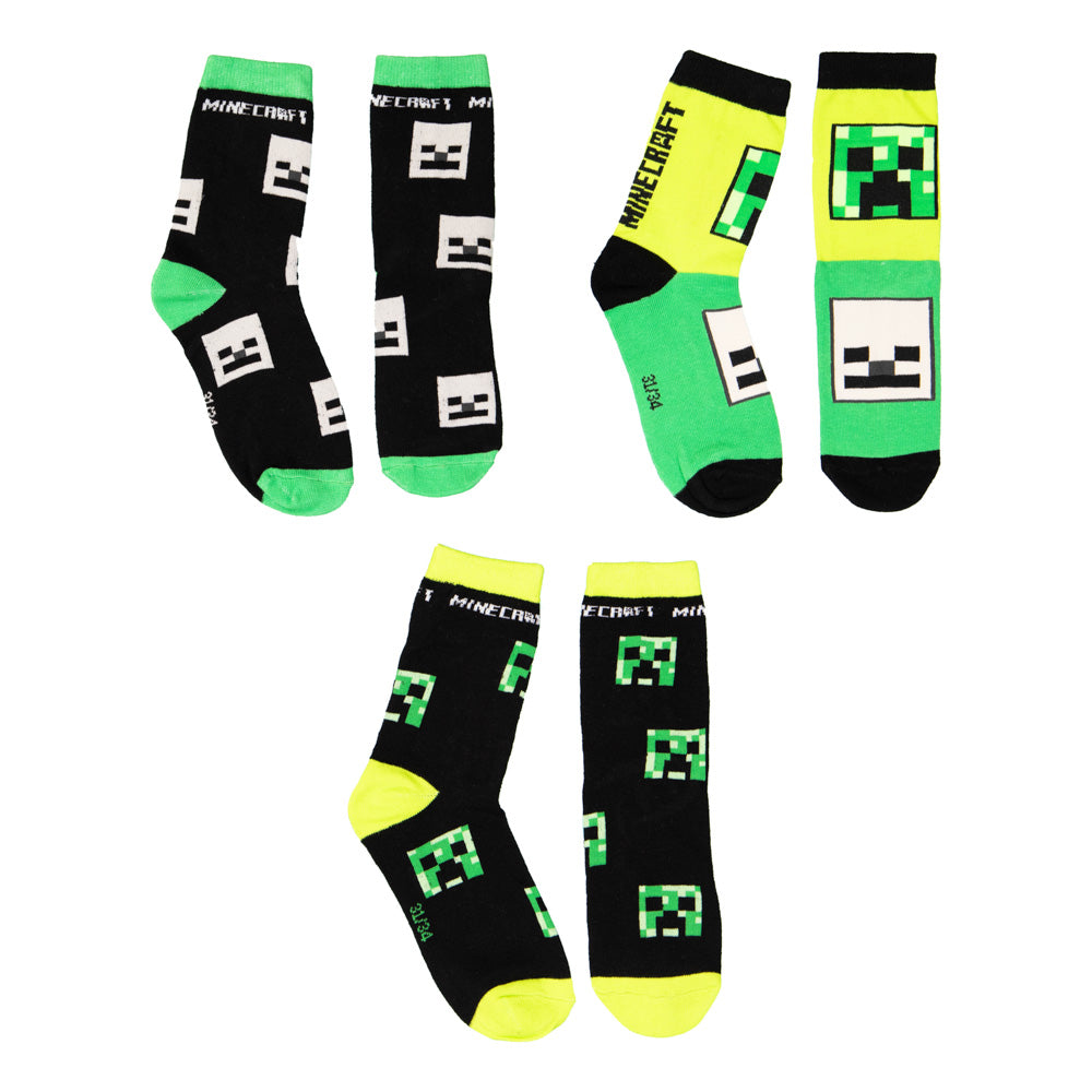Интересен комплект чорапи в тематични дизайни на любимата ви игра - Minecraft. В комплекта ще откриете 3 чифта чорапи в различни дизайни. За направата им не са използвани вредни химикали, което ги прави напълно безопасни за деца.