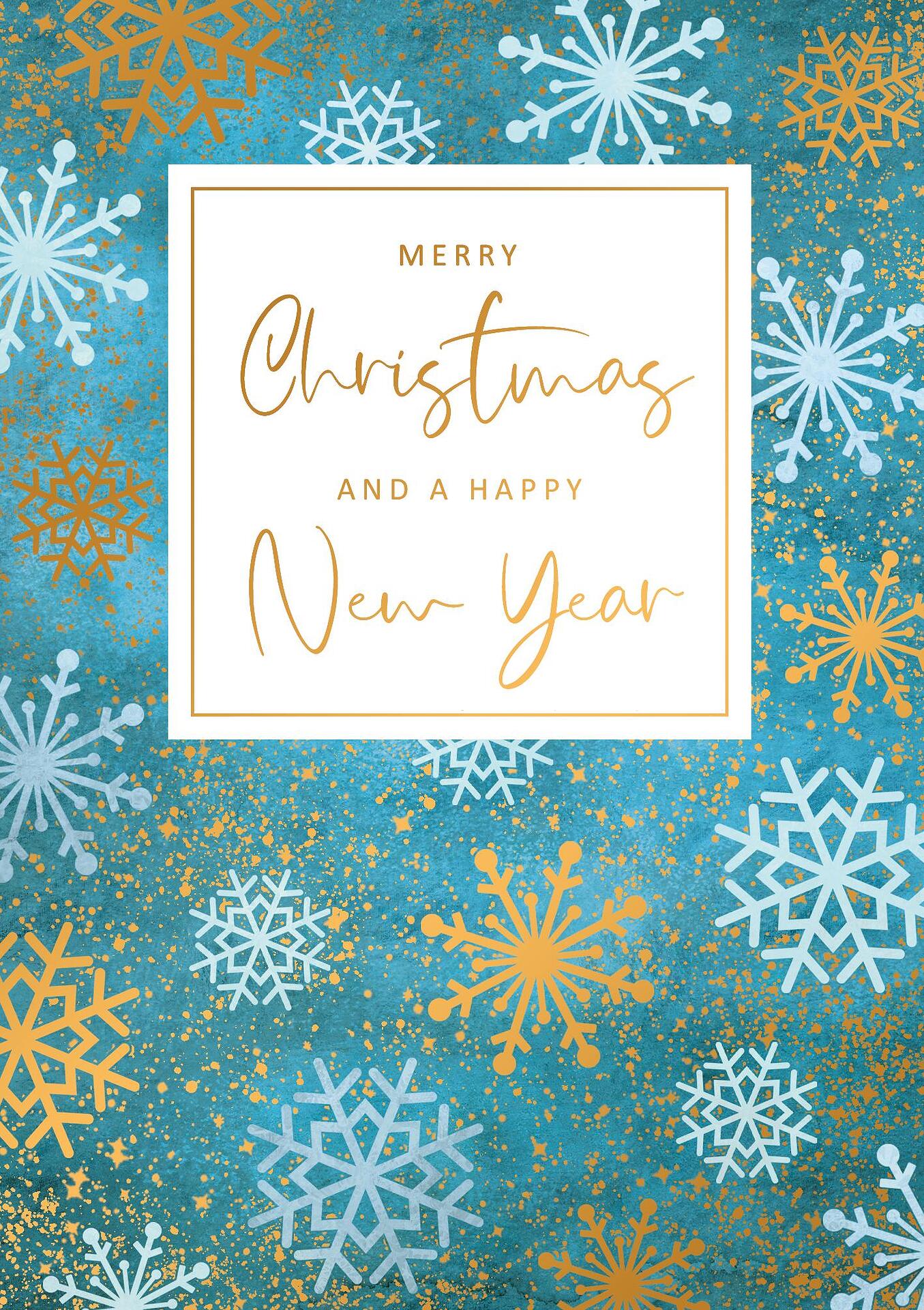 Коледна картичка със снежинки – нежна и стилна за празнични пожелания.