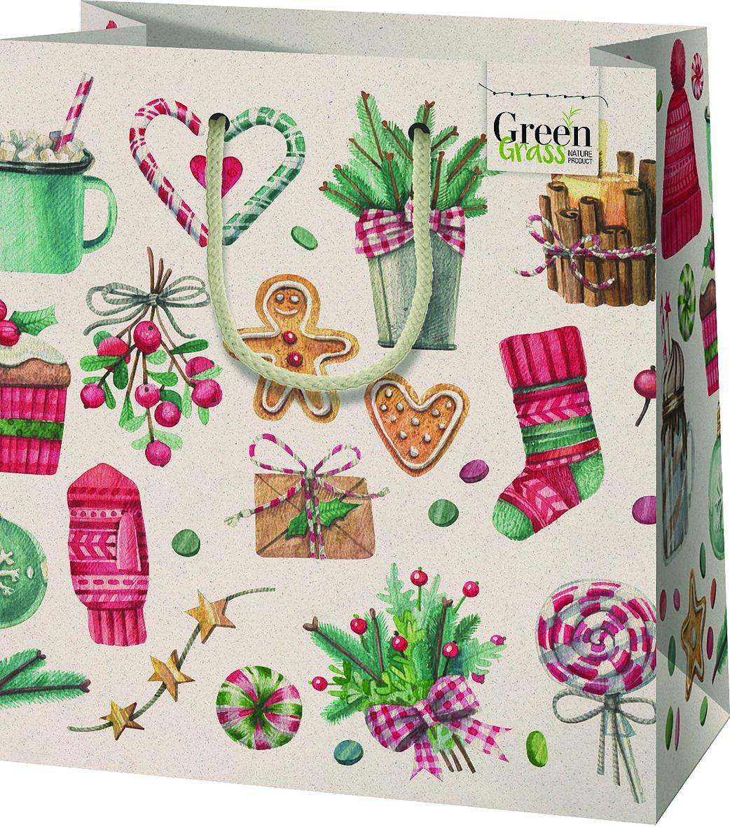 Екологична подаръчна торбичка от трева, размер M 20х23, с дизайн Коледна.