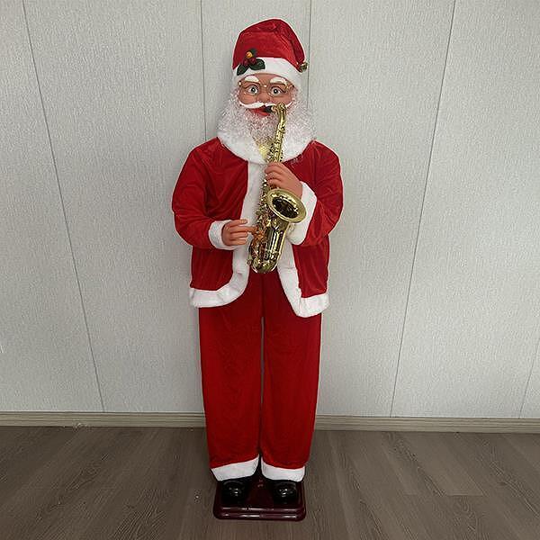 Декоративен Дядо Коледа със саксофон – свири и се движи. Височина 180 см.