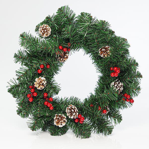ДЕКОРАЦИЯ ВЕНЕЦ С ЧЕРВЕНИ БОРОВИНКИ И ШИШАРКИ, 50 СМ