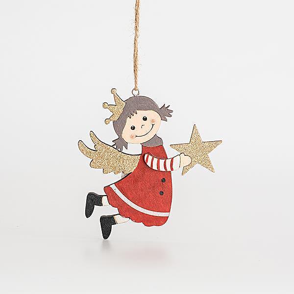 EUROLAMP Деко дървен ангел за елха, червено и златно, 11х1х12см