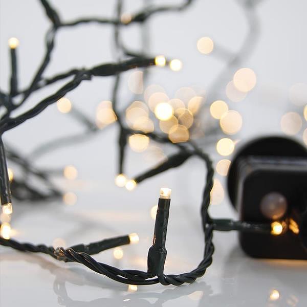 EUROLAMP 180 LED лампички, 8 функции, зелен кабел, топло бяла светлина.