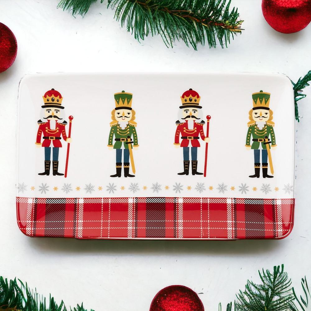 Порцеланова правоъгълна чиния, червена, дизайн Лешникотрошачка, 20x12,8 см.