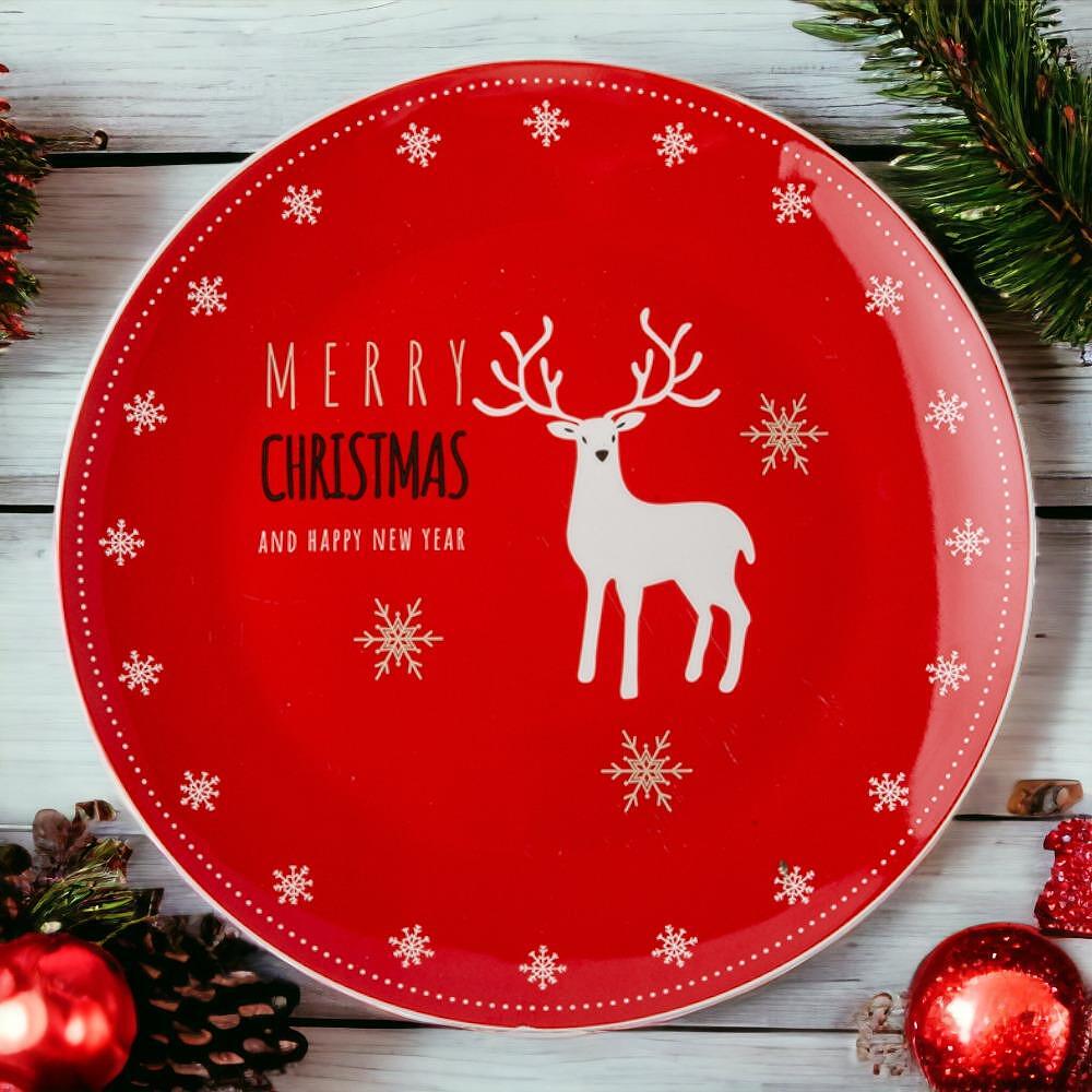 Порцеланова кръгла чиния с коледен дизайн „еленът Рудолф“, Ø 26,5 см.