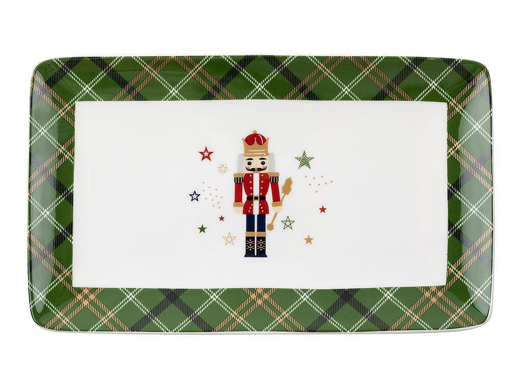 Порцеланова правоъгълна чиния, зелена, дизайн Лешникотрошачка, 20x12,8 см.