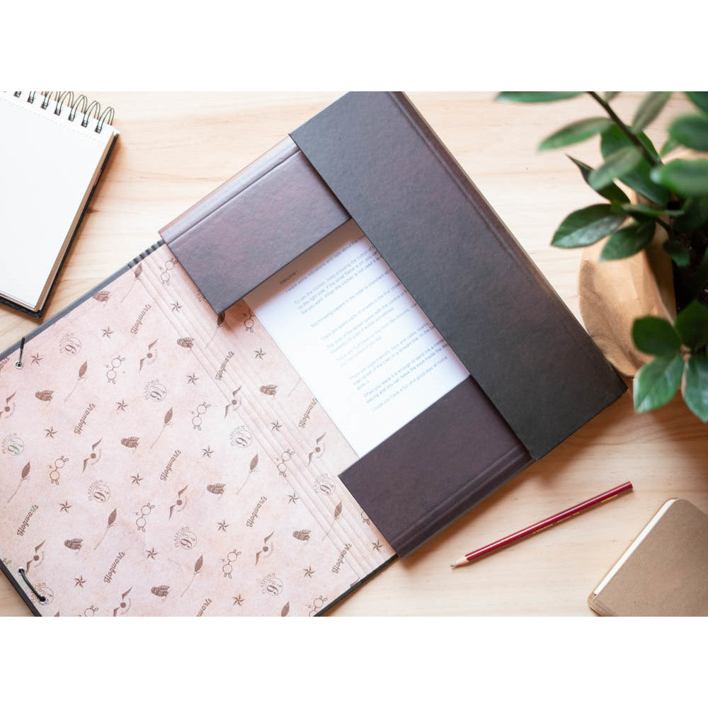 Harry Potter Gold папка с ластици, изработена от твърд картон с дебелина 2 мм и облицована със 150 гр матирана хартия в Harry Potter цветовете.