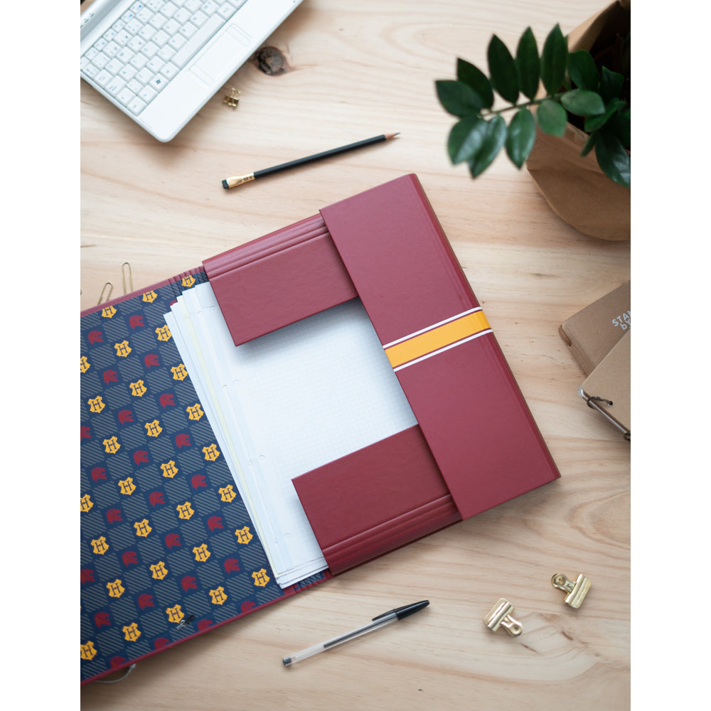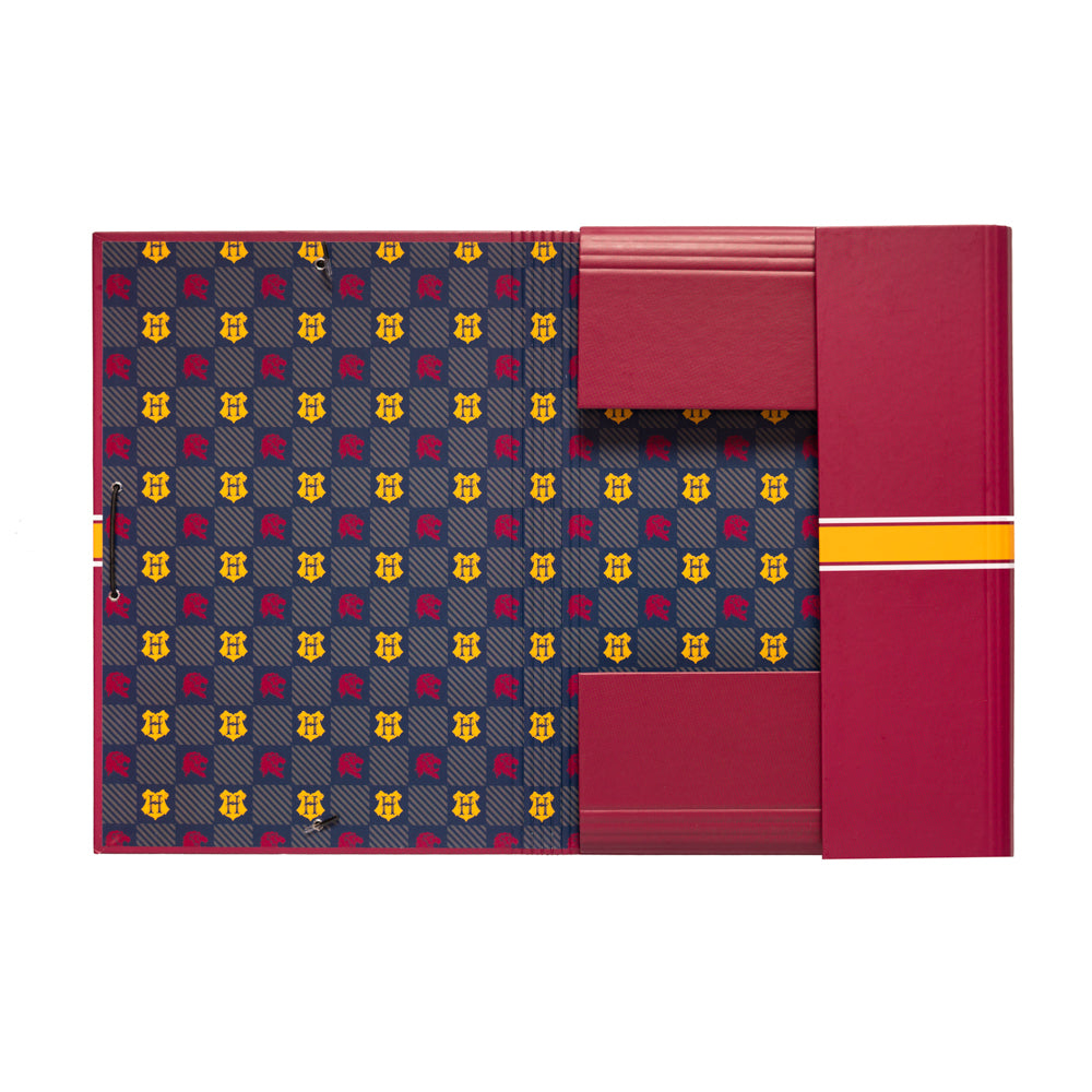 Harry Potter Griffindor папка с ластици, изработена от твърд картон с дебелина 2 мм и облицована със 150 гр матирана хартия в Harry Potter цветовете.