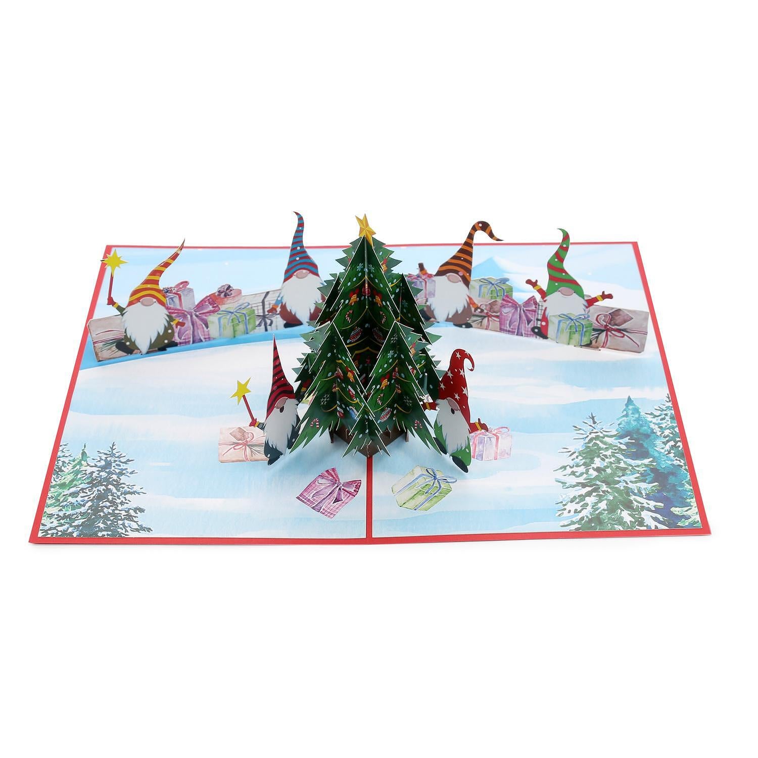 KIRIORI Поздравителна картичка "Джуджета с елха"