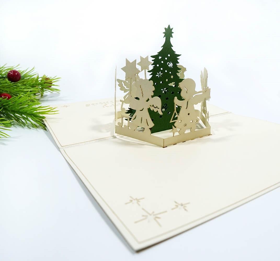 KIRIORI Поздравителна картичка "Елха с ангелчета"