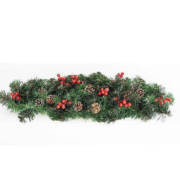Коледен декоративен гирлянд с шишарки и боровинки, 80см, зелен