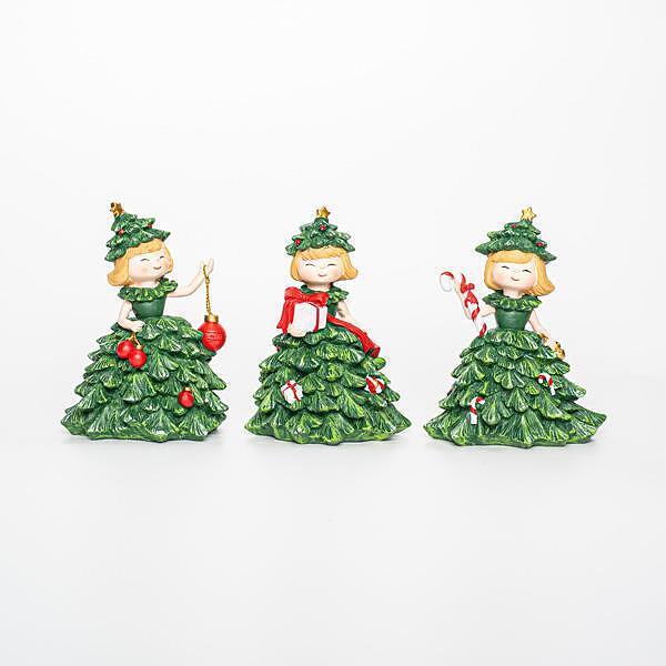 Коледни полирезинови момичета-дървета, 3 дизайна, 12см