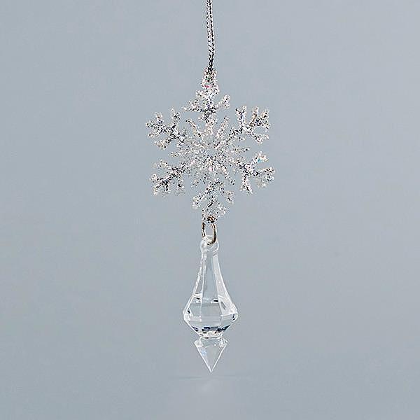 Дизайн: акрилна висулка с детайлна снежинка и блестящо сребристо покритие