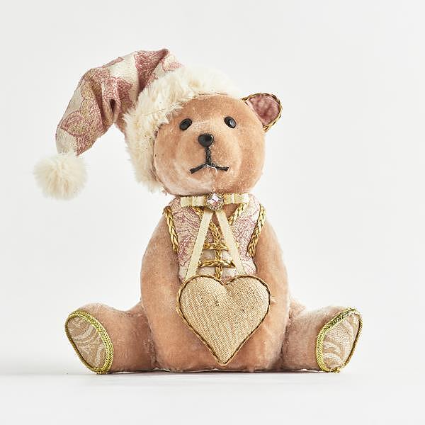 Коледен плюшен мечок с розови дрехи и шапка на Дядо Коледа, 26см