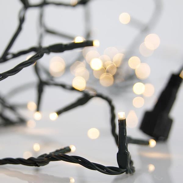 Коледни лампички – 100 LED, топло бяла светлина, зелен кабел, адаптор 31V, конектор, IP44.