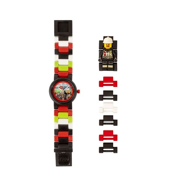 LEGO детски кварцов часовник. Сглобяема каишка от многоцветни, взаимозаменяеми връзки и елементи, която предлага множество дизайнерски възможности за изграждане на уникален часовник, който да отговаря на всички размери на детската китка. Могат да се добавят или премахват отделните сегменти, изработени от супер издръжлив поликарбонат. Водоиздръжливост до 50 метра.