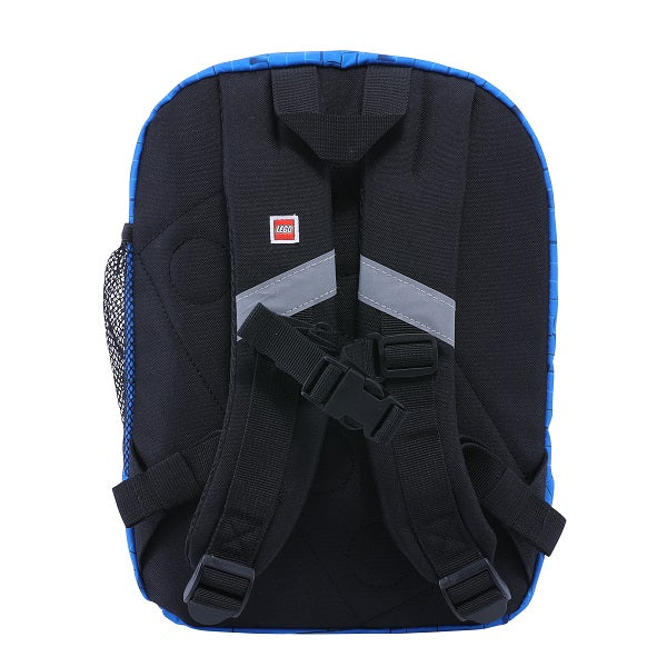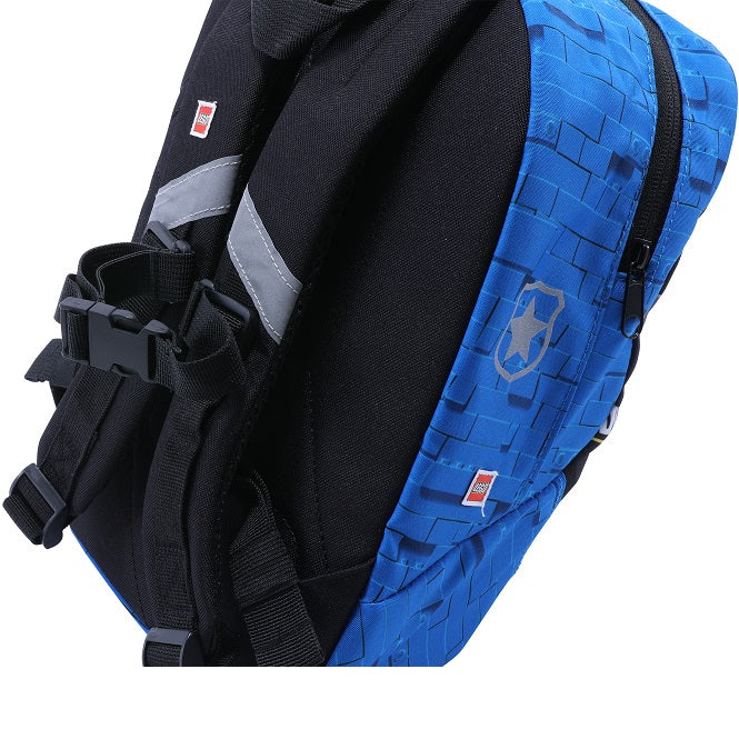Уширен ергономичен гръб с елемент на лего тухличка. Меки презрамки със здрави катарами. Закопчаване под гърдите за по-прецизно фиксиране към детския гръб. Водоотблъскваща материя, която не се цапа лесно. Стабилни ципове.
