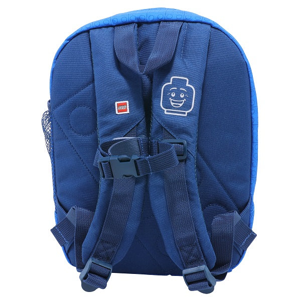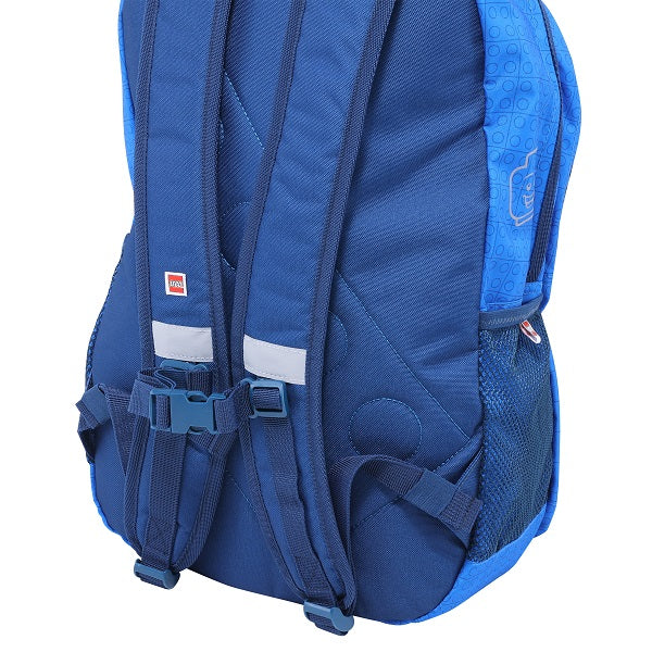 Уширен ергономичен гръб с елемент на лего тухличка. Меки презрамки със здрави катарами. Закопчаване под гърдите за по-прецизно фиксиране към детския гръб. Водоотблъскваща материя, която не се цапа лесно. Стабилни ципове.
