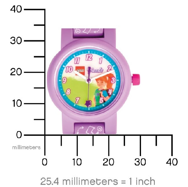 LEGO Friends Миа детски кварцов часовник от поредицата LEGO Friends. Сглобяема каишка на която децата сами избират последователността от цветни елементи и така постигат своята уникалност. Могат да се добавят или премахват отделните сегменти, изработени от супер издръжлив поликарбонат. Водоиздръжливост до 50 метра.