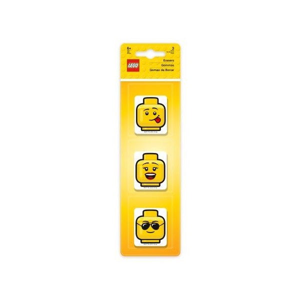 LEGO сет с три бели гумички с изображения на LEGO глави от серията Iconic.