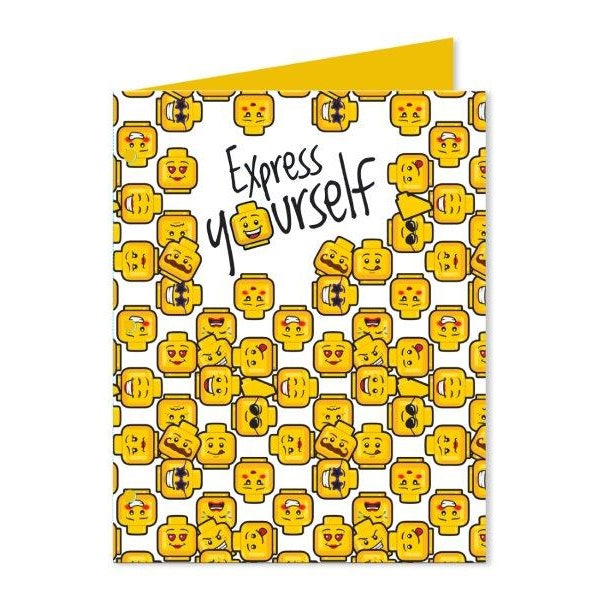 Картонена папка LEGO Iconic Express Yourself с класически LEGO лица за съхранение на А4 листа. Твърд гланциран картон с джобове от вътрешната страна за да не се губят листата. Размер: 237 мм х 300 мм х 3 мм.