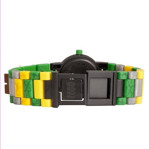 LEGO Jurassic World детски кварцов часовник от Джурасик свят 2: Рухналото кралство. Сглобяема верижка, която децата сами аранжират, чрез последователност от цветни елементи и така постигат своята уникалност. Могат с лекота да се добавят или премахват отделните сегменти, изработени от супер издръжлив поликарбонат. Мини фигурка на Велоцираптор, се закрепва на каишката и така децата ще имат винаги лидер динозавър, който да ги отличава. Нови, тематични цветни елементи във верижката. Водоиздръжливост до 50 метра.