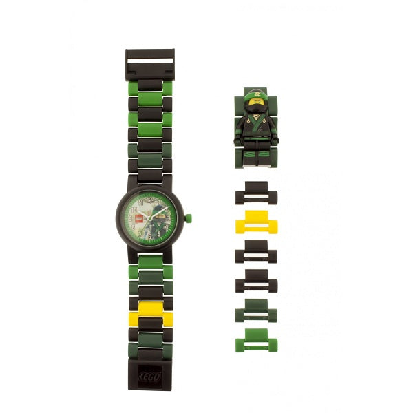 LEGO Ninjago детски кварцов часовник от филма LEGO Ninjago The Movie. Сглобяема верижка, която децата сами аранжират, чрез последователност от цветни елементи и така постигат своята уникалност. Могат с лекота да се добавят или премахват отделните сегменти, изработени от супер издръжлив поликарбонат. Мини фигурка на Lloyd, се закрепва на каишката и така децата ще имат винаги верен съюзник близо до тях. Водоиздръжливост до 50 метра.