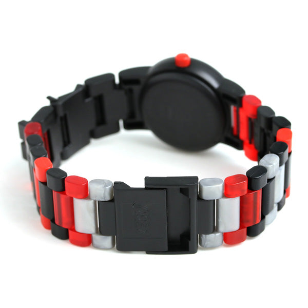 LEGO детски кварцов часовник. Сглобяема каишка от многоцветни, взаимозаменяеми връзки и елементи, която предлага множество дизайнерски възможности за изграждане на уникален часовник, който да отговаря на всички размери на детската китка. Могат да се добавят или премахват отделните сегменти, изработени от супер издръжлив поликарбонат. Водоиздръжливост до 50 метра.