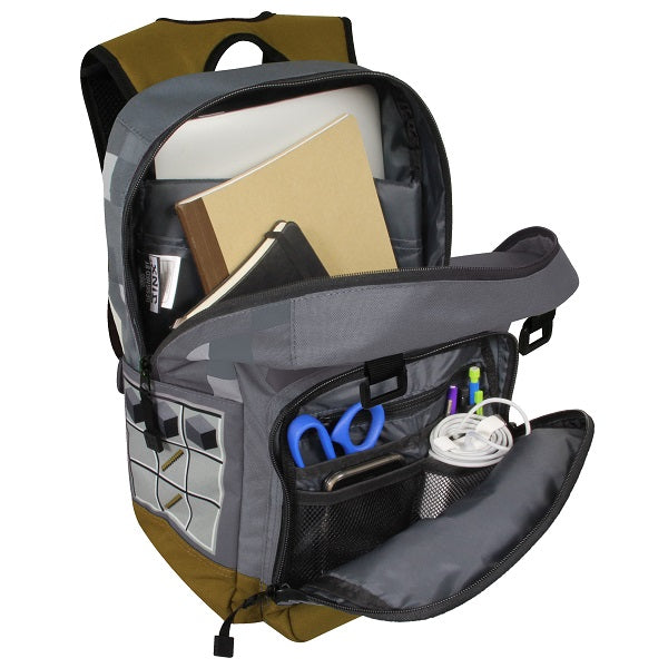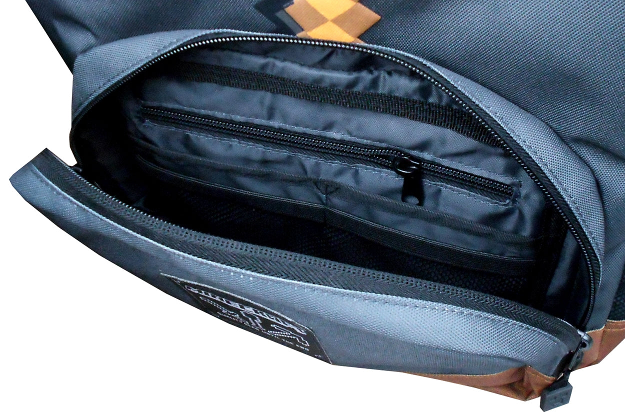 В голямото отделение, разделено с преграда, ще съберете всичко необходимо за училище. Меки, комфортни и регулируеми презрамки. Принт барове на двете презрамки. Страничен текстилен джоб с тематични принтове. От другата страна джоб от мрежа. Удобен малък челен джоб с ципове и мрежи за несесери и аксесоари.