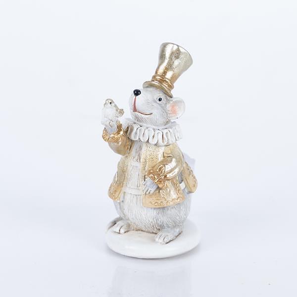 Полирезинова декоративна фигурка с мишка и птица в шампанско. Височина: 11см.