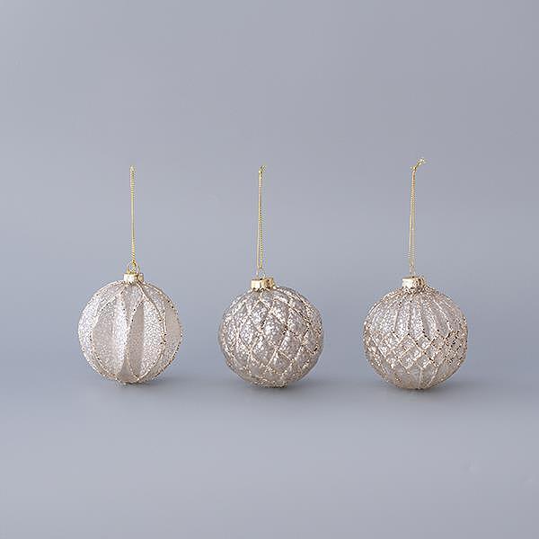 EUROLAMP топки за елха от стъкло, цвят шампанско, 8см, сет 4 бр.