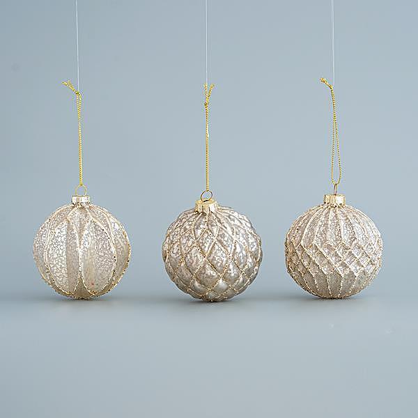 EUROLAMP коледни топки от стъкло, цвят сребро и шампанско, 8см, 4 бр.