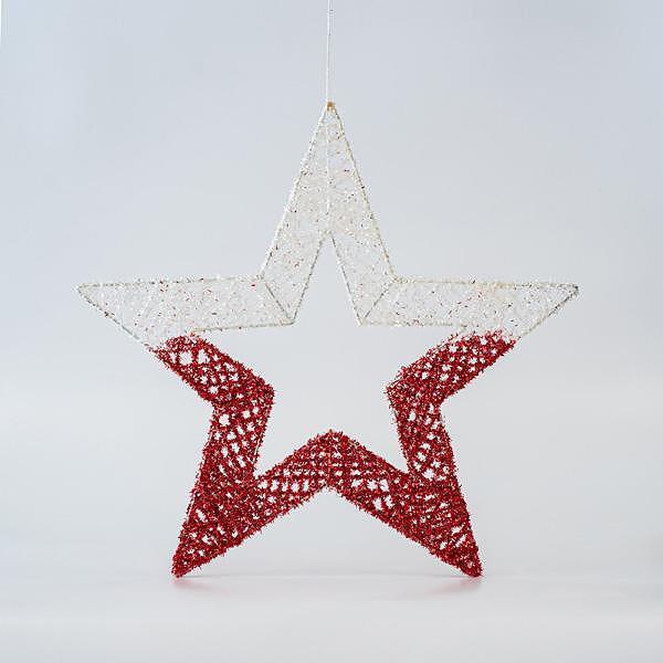 Коледна висяща звезда, бяло-червена, 45 см